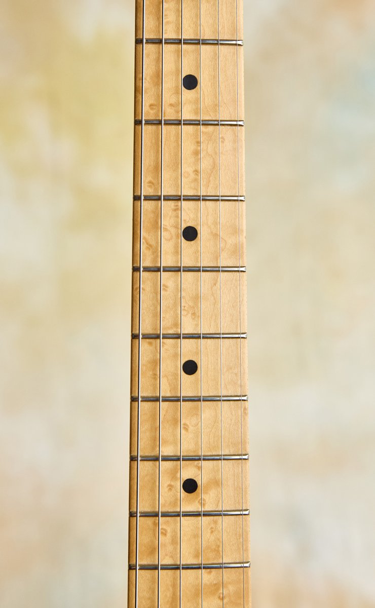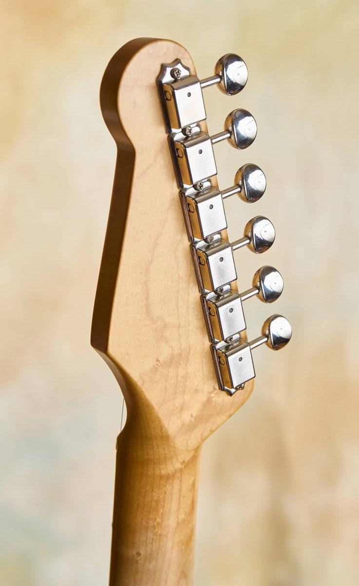 At 1.670" nut width with Jescar frets, the playability is outstanding. JW's fretwork is impeccable, as you'd expect from someone with his experience. The Gotoh Custom bridge and staggered vintage tuners keep everything stable and true. Even small details like the aged pickup covers and knobs show the care that went into creating an instrument that feels authentic without being a slavish copy.