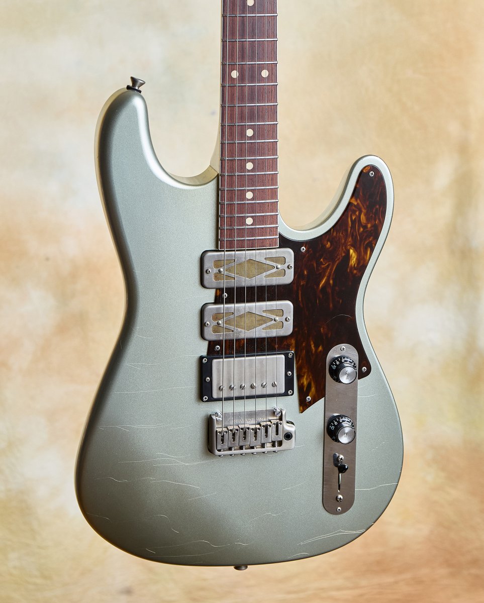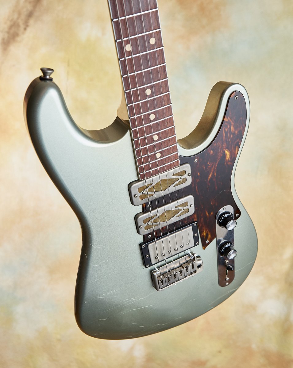 The concept is brilliant in its simplicity: take that familiar Strat-like body shape and six-in-line headstock with vibrato bridge, then marry it to a set neck construction and 24.625" scale length. The result feels immediately comfortable and familiar, yet somehow fresh. The soft V-neck carve has that substantial feel of a great vintage Gibson without any of the bulk that can slow you down.