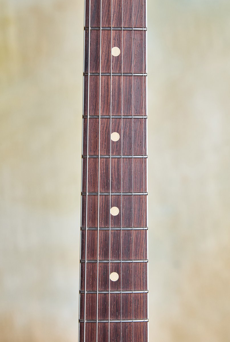 What impressed me most was the overall coherence of the instrument. Every component feels purposefully chosen rather than just spec'd for looks. The Gotoh locking tuners are rock solid, the stainless steel frets make bending effortless, and the Amazon rosewood fingerboard has the visual appeal of Brazilian rosewood. At just under eight pounds, it's perfectly balanced — no neck dive, no awkward weight distribution.