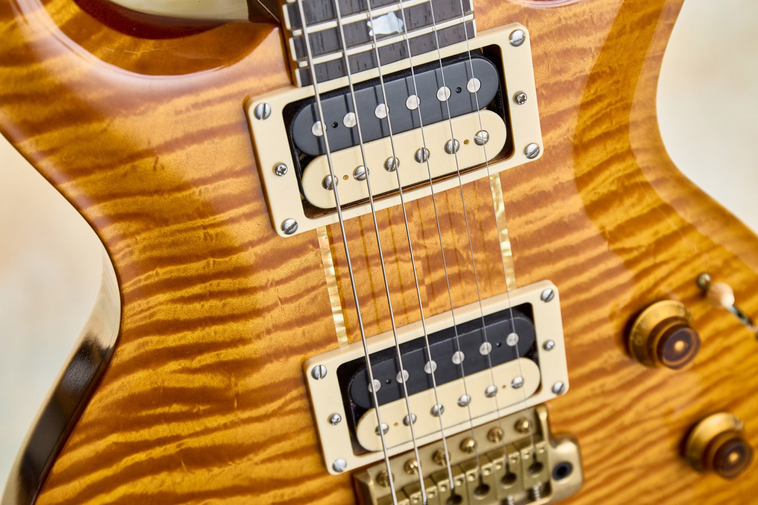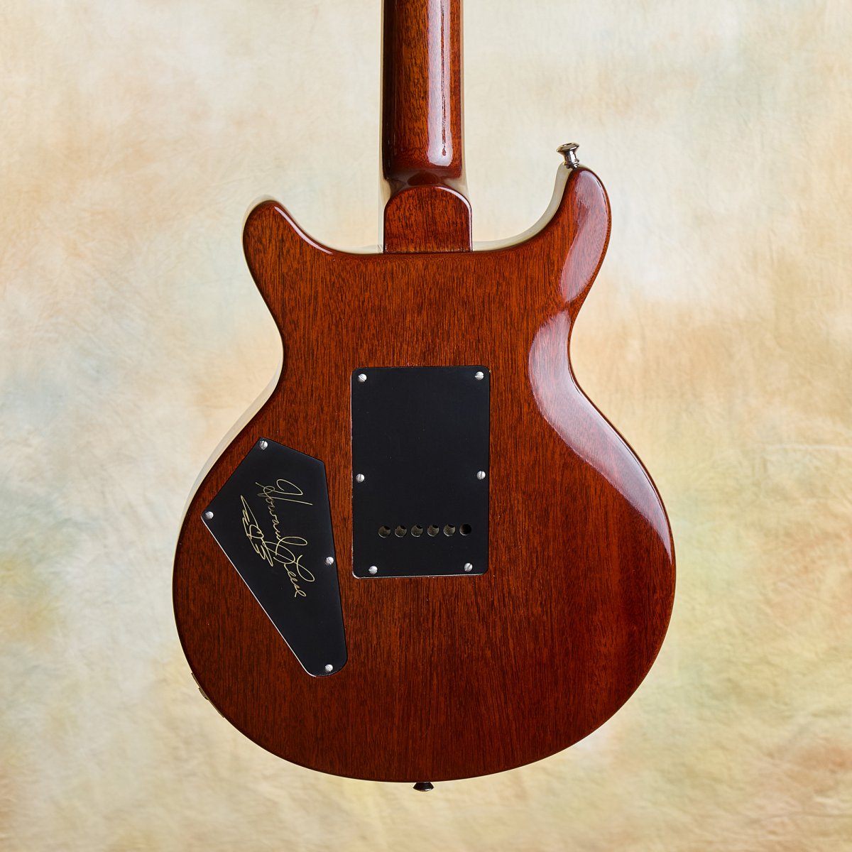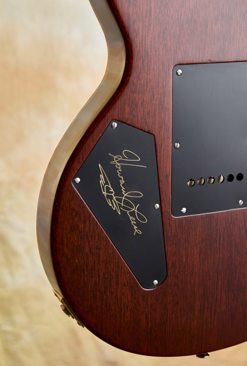 The Howard Leese pickups with their zebra bobbins were wound to replicate the originals in Howard's guitar. They have real character; the neck pickup sits in PAF territory, warm and sweet, while the bridge runs hotter with more bite and cut. Together with the volume/tone/tone layout and 3-way bladeswitch, the range goes from clean, bell-like shimmer to thick, snarling rock tones. This is the sound that drove Heart's '80s records, paired with Howard's Soldano amps. That combination is legendary for good reason.