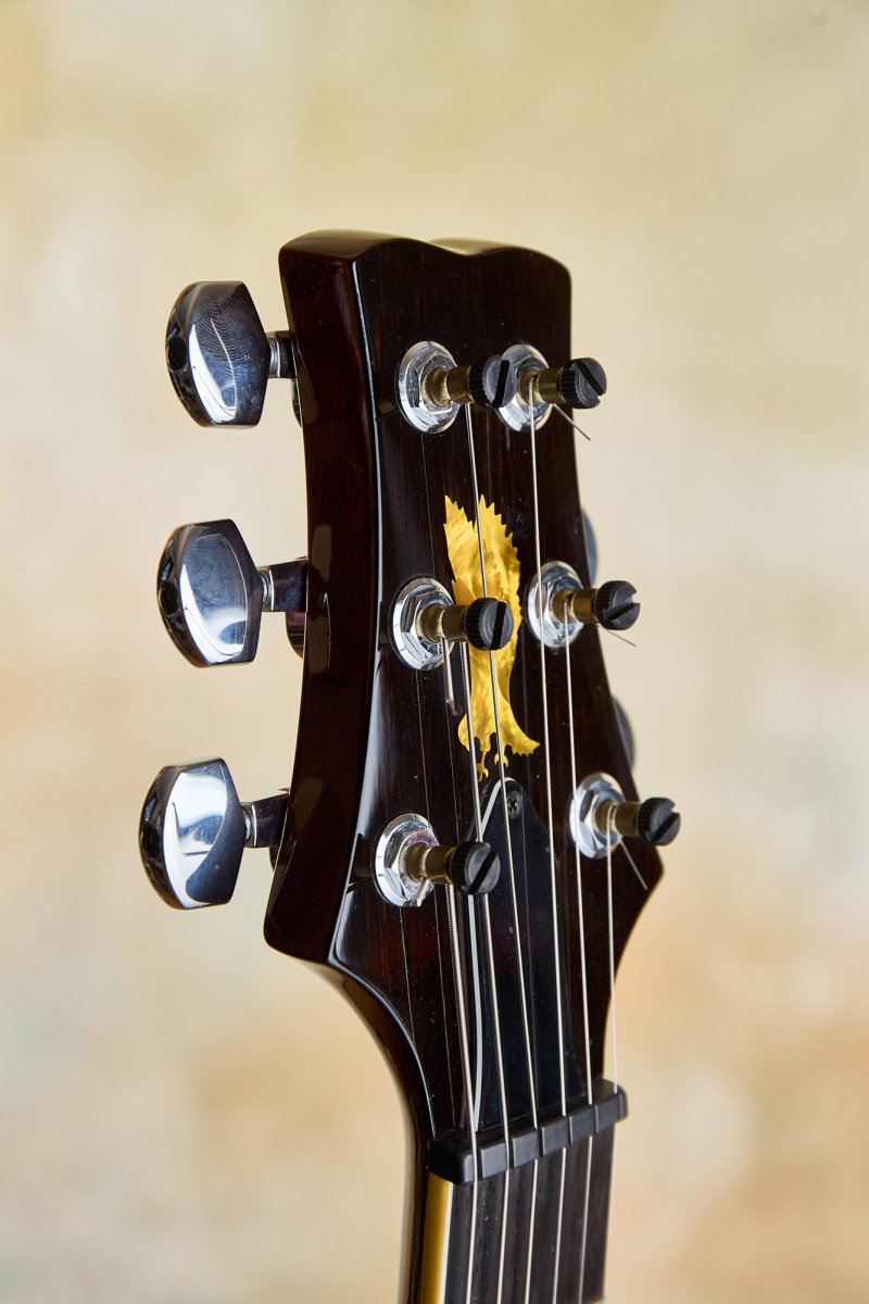 | Headstock | pre-factory Santana shape with ebony veneer, toned mother-of-pearl Private Stock eagle, modified truss rod cover |