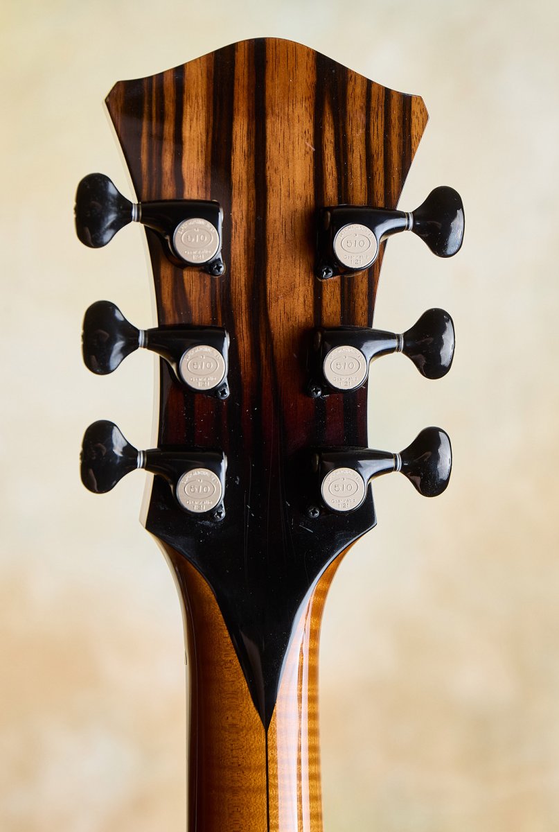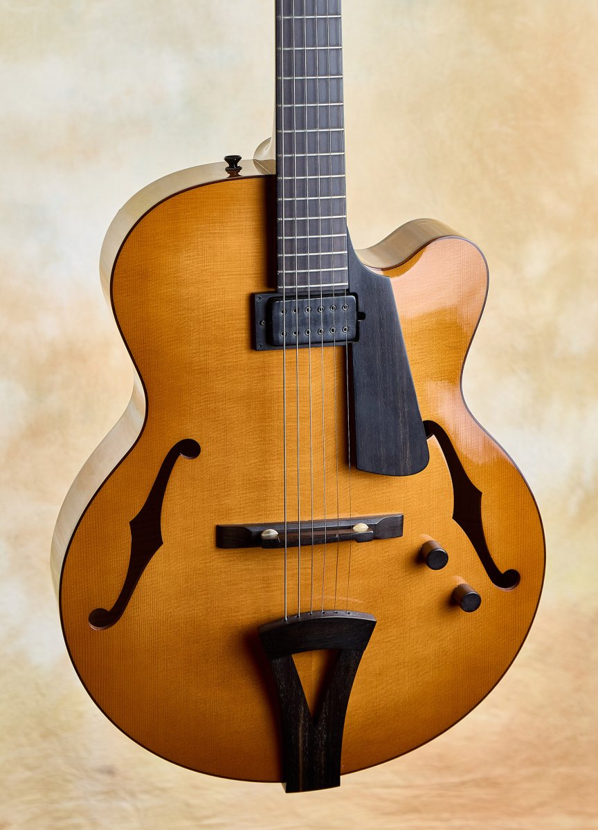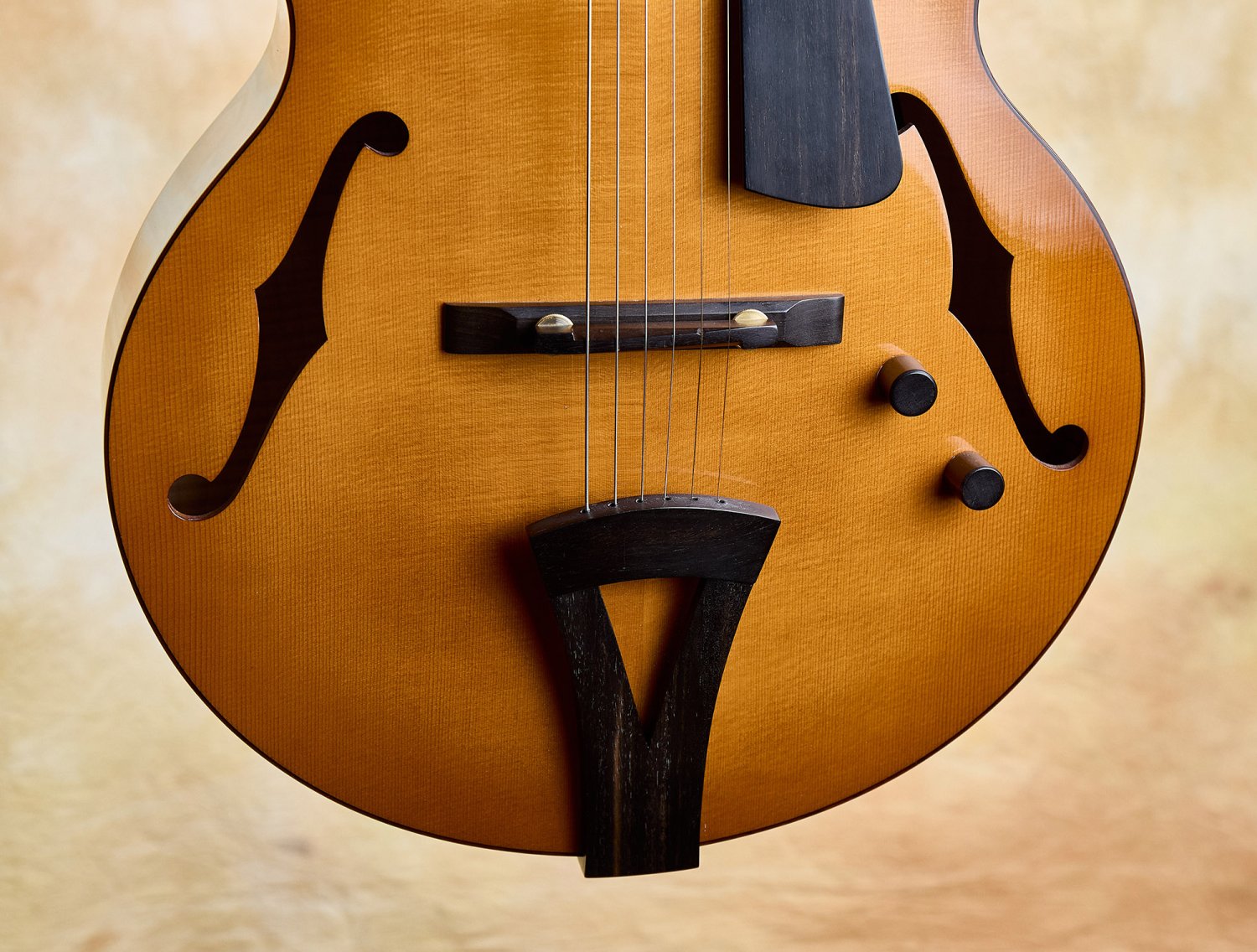 Steve balances the inherent brightness of an archtop design with the warmth that modern players prefer. He's built nearly 500 instruments over 30 years, developing an intuitive sense of how wood selection, top thickness, and arching work together. This particular example showcases that understanding.